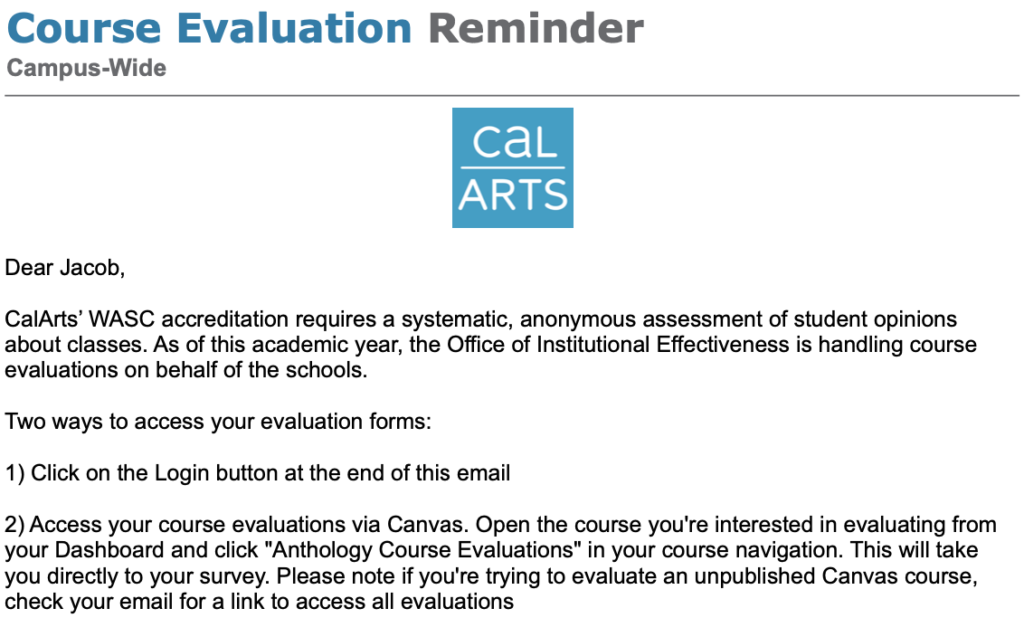 “As of this academic year, the Office of Institutional Effectiveness is handling course evaluations on behalf of the schools.”1